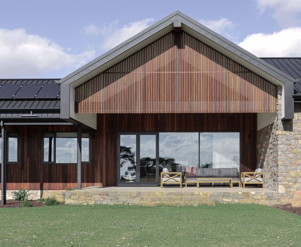 The farmhouse’s external facades showcase a blend of the Australian hardwoods, spotted gum and jarrah, while inside These natural timbers were supplied through our multiple timber products, in order to meet the desired rustic aesthetic of the surrounding country.